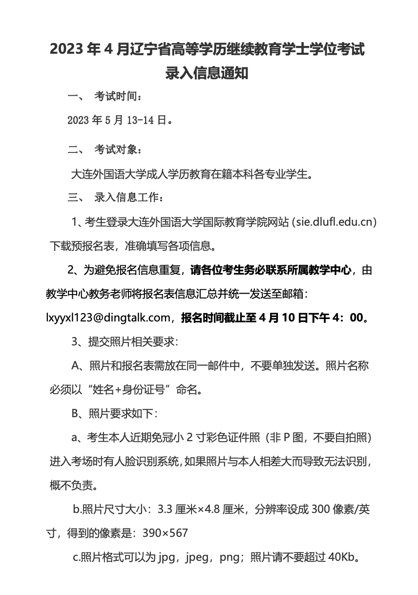 2023年4月辽宁省高等学历继续教育学士学位考试录入信息通知