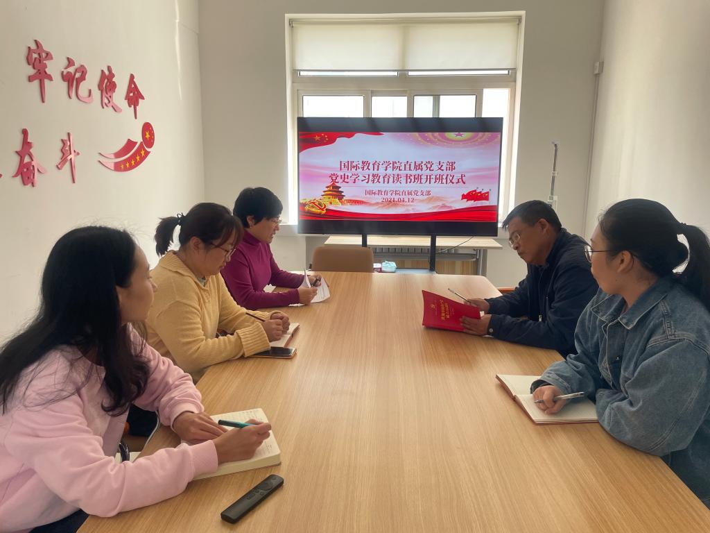 直属党支部党史学习教育读书班开班仪式在党员会议室A306举行。党支部书记王俊慧主持会议并讲话,学院党史学习教育小组成员参加了此次学习。