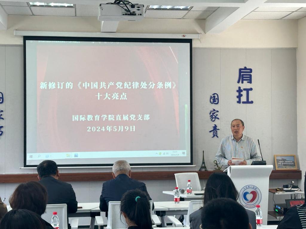 直属党支部在中山校区A406召开了党纪学习教育及岗位廉洁教育会议,学院全体党员、学院各行政部门和各中心全体教工参会。会议邀请了我校前纪委副书记周振林同志做新修订的《中国共产党纪律处分条例》十大亮点解读。