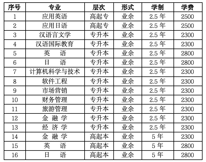 三、收费标准:各层次、各专业收费标准详见后文表格