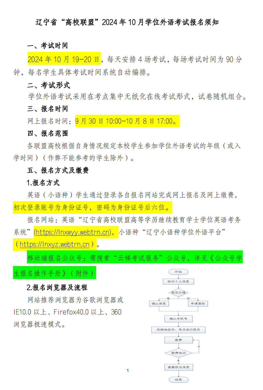 辽宁省“高校联盟”2024年10月学位外语考试报名须知
