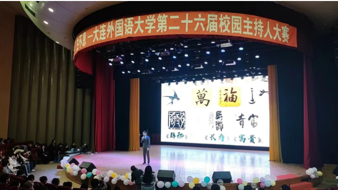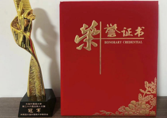最终经过评委打分,张赛文同学不负众望,获得大连外国大学第二十六届校园主持人大赛冠军。