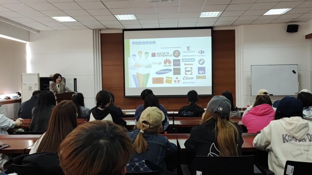 法国本科教学部联合法国ISTEC高等商学院在学校11教报告厅举办法国留学宣讲会,正式启动九秀直播