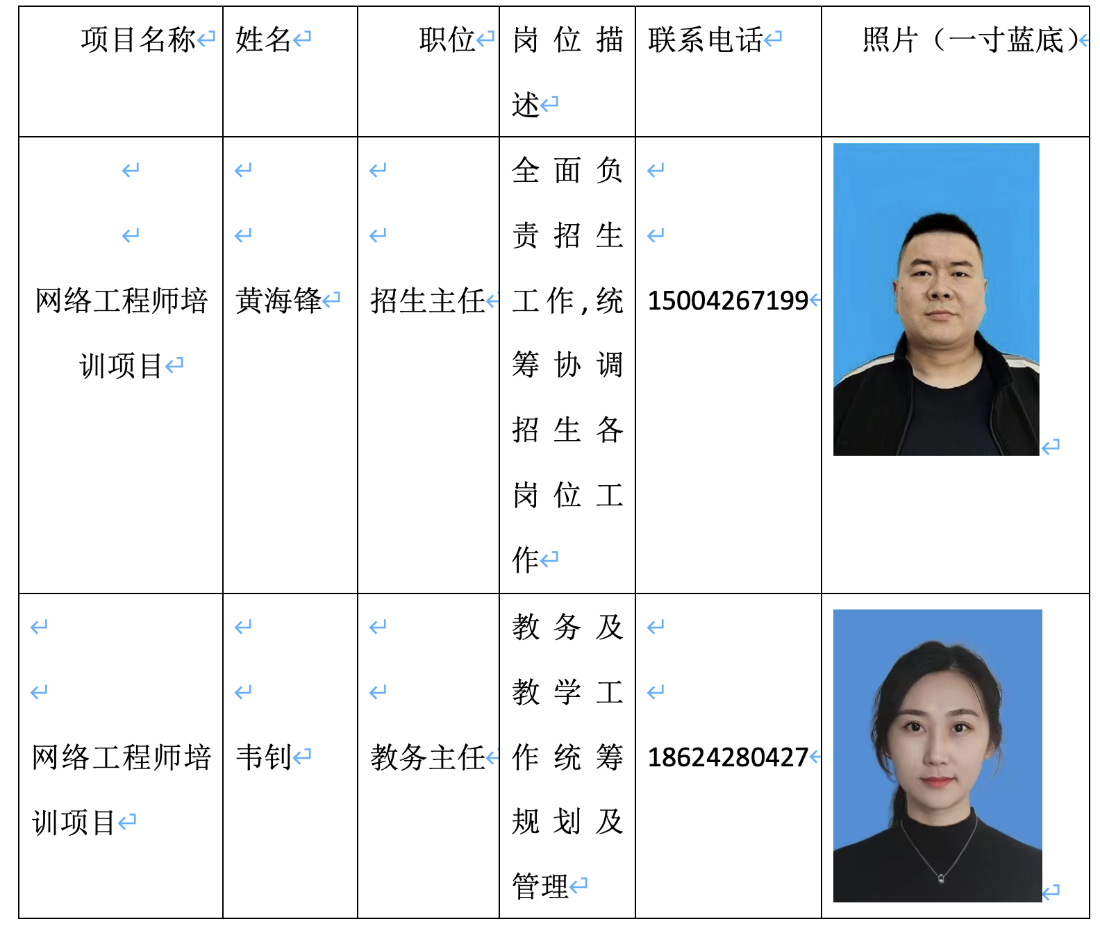 网络工程师人员信息